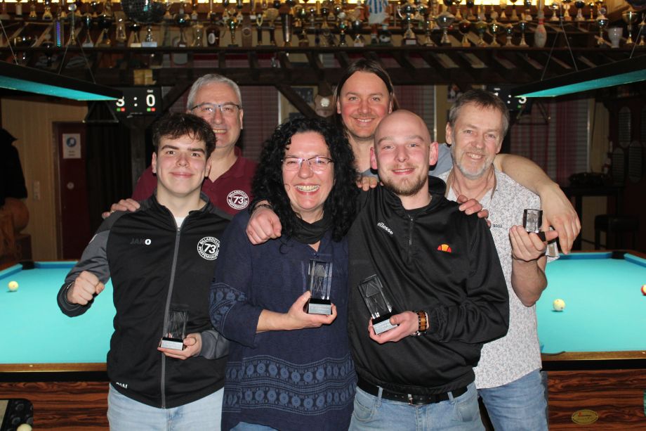 Vom 09.04. bis zum 12.04. fanden in Landsberg die Bayerischen Jugendmeisterschaften im 8-Ball, 9-Ball, 10-Ball und 14/1 endlos statt. Für den Billardclub 73 Pfeffenhausen gingen im 14/1 sieben Teilnehmer an den Start. Christoph Wimmer konnte sich am ersten Turniertag direkt die erste Goldmedaille in der mU22 holen. Des Weiteren holten sich die restlichen Spieler des BC73 noch dreimal Platz 5, einmal Platz 6 und einmal Platz 10. Am zweiten Turniertag nahmen im 10-Ball neun Spieler für den BC73 teil. Simone Wimmer holte sich hier die Goldmedaille in der wU22. Außerdem sicherte sich Christoph Wimmer die Silbermedaille in der mU22 und Konstantin Dreher die Silbermedaille in der mU14. Außerdem gab es für den BC73 noch zwei 3. Plätze, einmal Platz 4, einmal Platz 5 und zweimal Platz 7. Im 8-Ball starteten bei einen Starterfeld von 59 Teilnehmer sage und schreibe 15 Teilnehmer für den BC73. Christoph Wimmer sicherte sich in der mU22 seine zweite Goldmedaille des Turniers. Simone Wimmer holte sich in der wU22 die Silbermedaille. Zudem gingen zweimal Platz 3, fünfmal Platz 5, zweimal Platz 7, zweimal Platz 9 und zweimal Platz 10 an die Spieler des BC73. Am vierten und letzten Spieltag gingen im 9-Ball neun Spieler an den Start. Simone Wimmer holte sich in der wU22 die zweite Goldmedaille und Christoph Wimmer in der mU22 die zweite Silbermedaille des Turniers. Zudem gab es noch einen 3. Platz, einen 4. Platz, viermal Platz 5 und einmal Platz 6.
